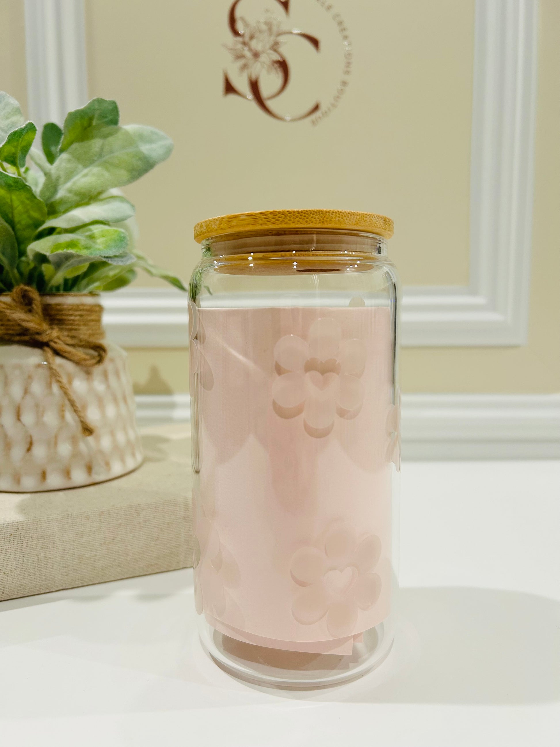 This 16oz clear glass cup features changing color vinyl that magically changes color! Perfect for iced coffee, teas, or your favorite drinks, it adds a fun pop of personality with every sip. Cute, unique, and reusable your new go to cup for everyday vibes.