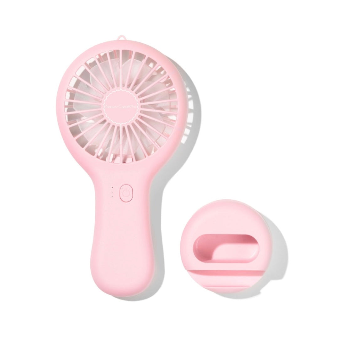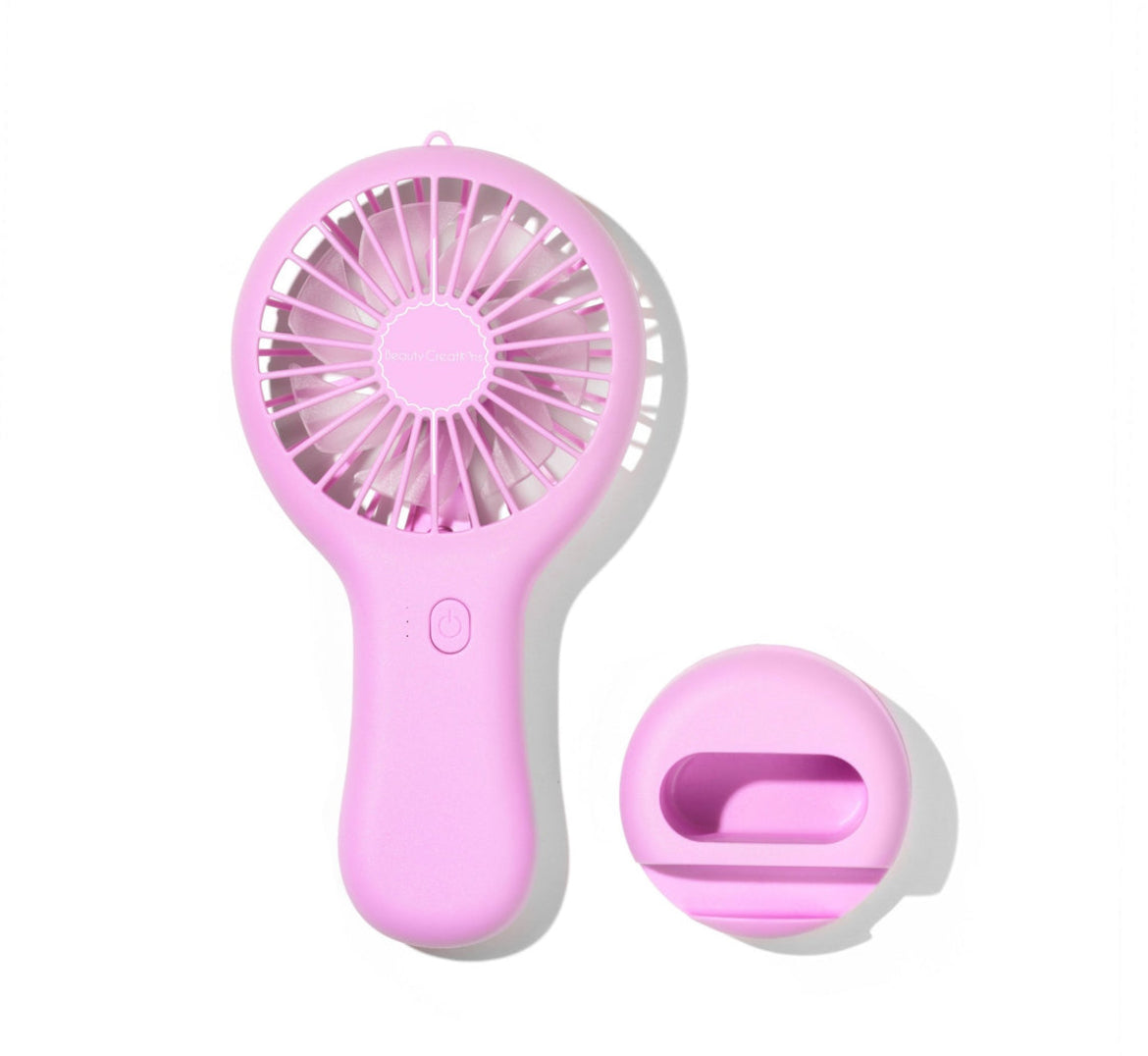 Grab your cute travel size portable fan! What a perfect addition to your make up routine, to help dry your makeup products in seconds and/or to use for summer to cool down.