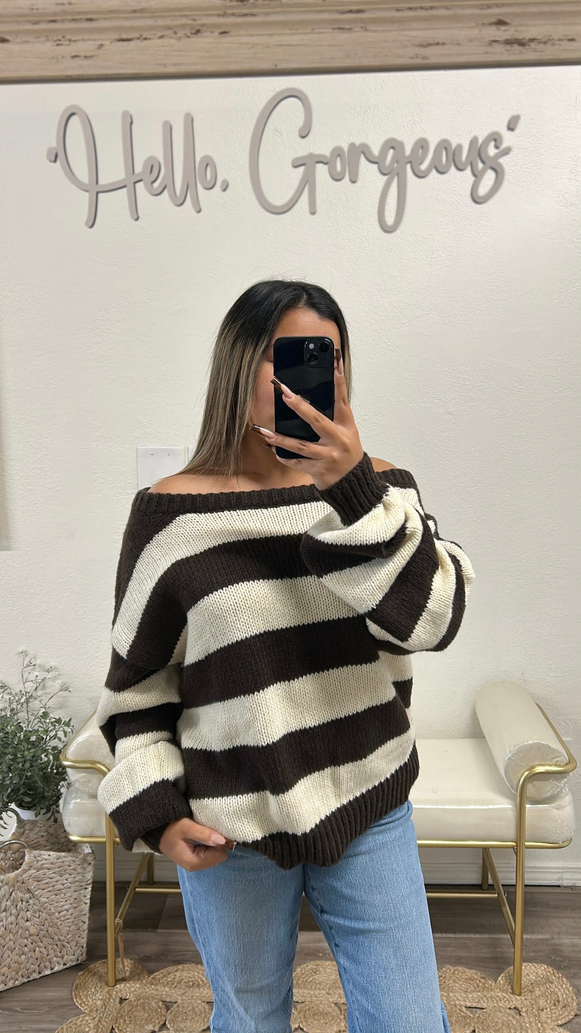 Stay cozy and effortlessly stylish in The LEXI Off-Shoulder Oversized Sweater. Designed with a wide boat neckline that can be worn off the shoulder, this pullover drapes beautifully for a relaxed, laid-back look. The bold rugby-inspired stripes add a standout touch, while the oversized fit and long loose sleeves deliver all-day comfort.
